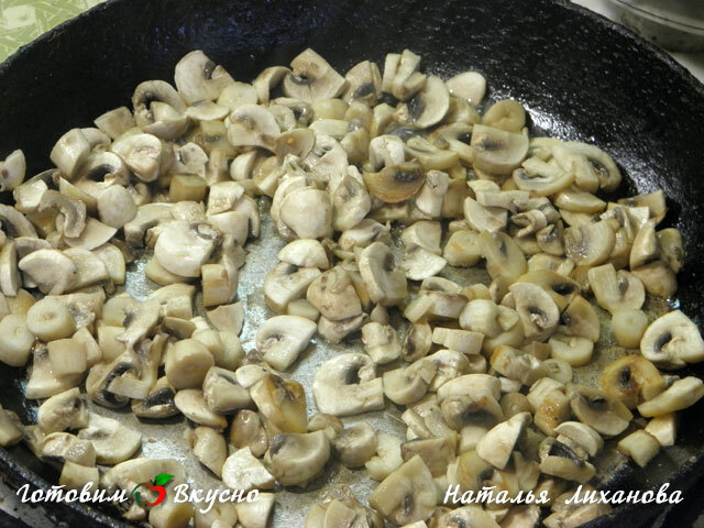 Нарезаем шампиньоны и обжариваем их на сливочном масле.