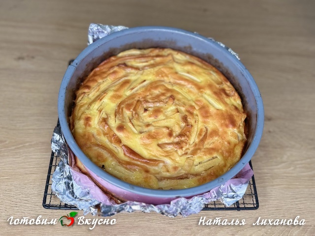 Быстрый и простой рецепт пирога с яблоками, тесто фило сейчас легко найти в любом супермаркете, получается очень вкусно. Желательно использовать глубокую неразъемную форму, так как заливка для пирога жидкая и легко просачивается в щели разъемной формы.