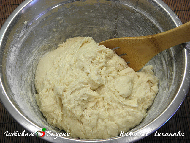 Чтобы приготовить пончики на кефире, яйца, сахар, кефир и соль соединяем и смешиваем до однородной массы. Затем добавляем соду, масло, перемешиваем. Засыпаем просеянную муку и замешиваем тесто, сначала в миске, а потом на столе. Тесто должно быть гладким и отлипать от рук.
