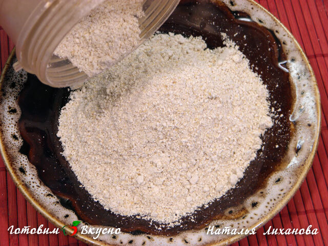 Чтобы приготовить постное овсяное печенье, овсяные хлопья с помощью блендера измельчаем до состояния муки.