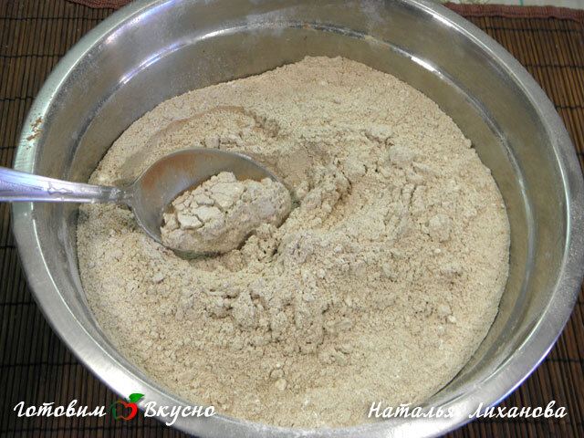 Вливаем жидкие ингредиенты в сухие и перемешиваем до однородной массы. Тесто будет не слишком густое. Берем форму, смазываем ее маслом и заливаем тесто.
