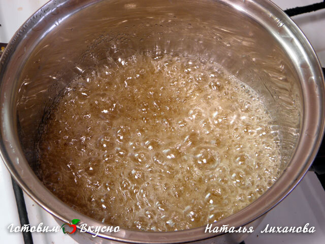 Для начала приготовим форму, в которую будем выливать готовый рахат-лукум: застилаем ее пищевой пленкой и смазываем маслом. Теперь варим сахарный сироп. В кастрюлю засыпаем сахар, воду и лимонную кислоту. Все перемешиваем, на среднем огне доводим до кипения и кипятим под крышкой 5 мин. Затем, помешивая, варим на среднем огне до золотистого цвета (7-15 мин) Накрываем крышкой и отставляем.