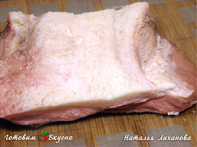 Для приготовления рулета из брюшины, сало хорошо промываем, высушиваем бумажным полотенцем, убираем шкурку.