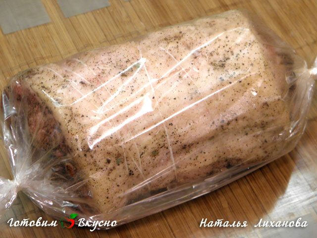 Укладываем рулет в рукав для запекания и хорошо завязываем.