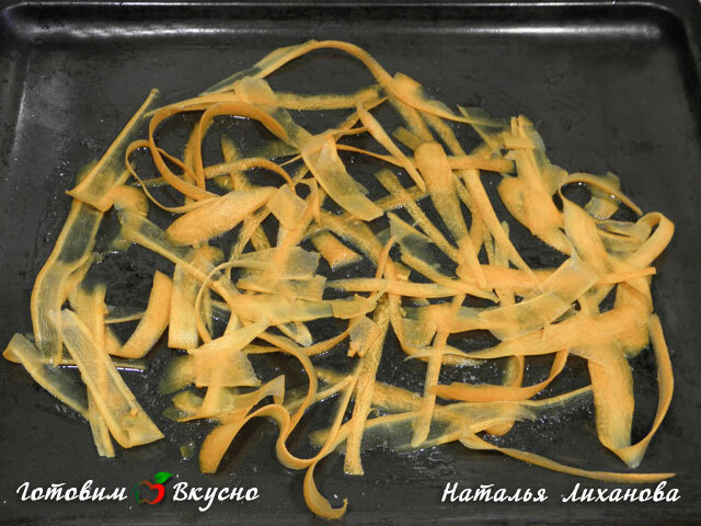 Для нарезания моркови я использовала овощечистку. К промасленной моркови рыба не пристанет.
