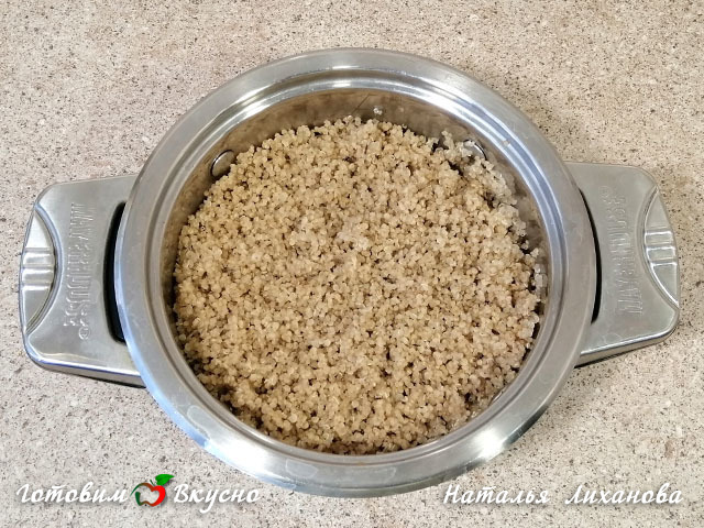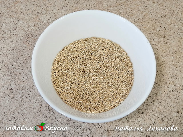 Готовится киноа самым обычным способом. На 1 часть крупы берем 2 части воды и варим до готовности, это займет минут 15-20. Готовую крупу нужно остудить.