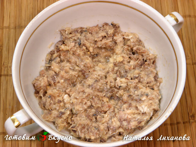 Рыбу разминаем вилкой, лишнее масло нужно слить.