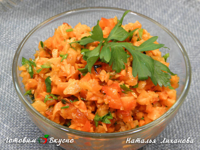 Рецепт вкусного и очень полезного салата, его можно приготовить всего за несколько минут. Салат получается яркий, сочный и ароматный. Такой салат хорошо сочетается с мясом, курицей или рыбой, его можно хранить в холодильнике несколько дней.