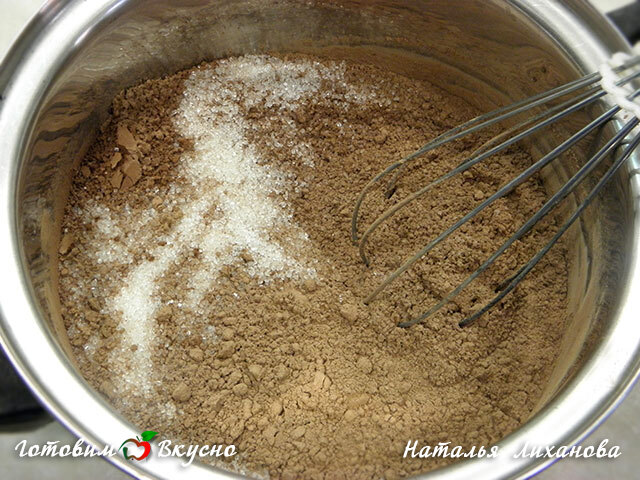 Какао соединяем с сахаром и перемешиваем.