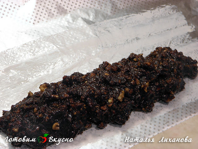 Шоколадная колбаска с печеньем и орехами - фото рецепта