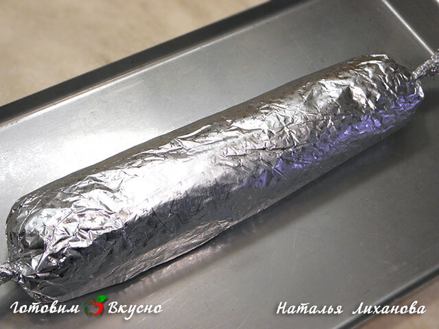 Плотно заворачиваем придавая форму колбаски.