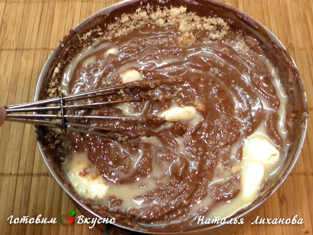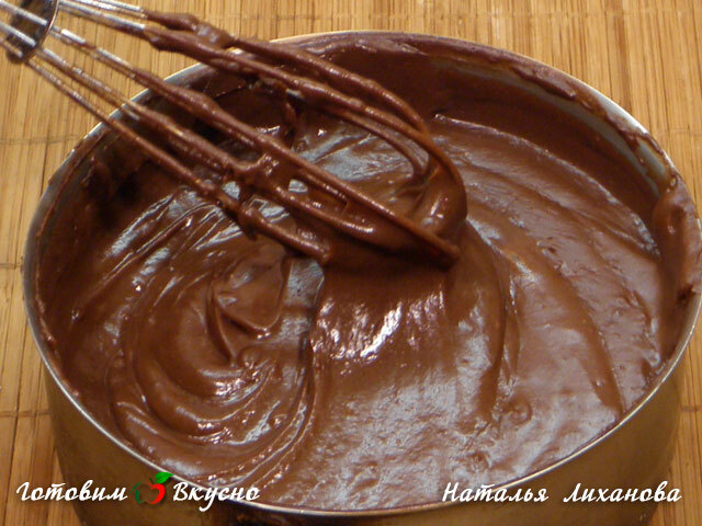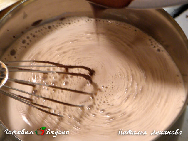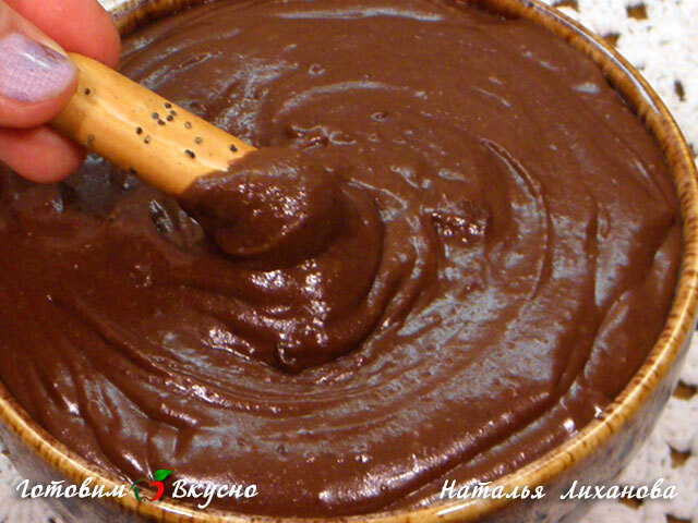 На небольшом огне варим пасту, не переставая мешать, пока она не загустеет. Убираем шоколадно-ореховую пасту с огня и остужаем, пока не станет теплой.