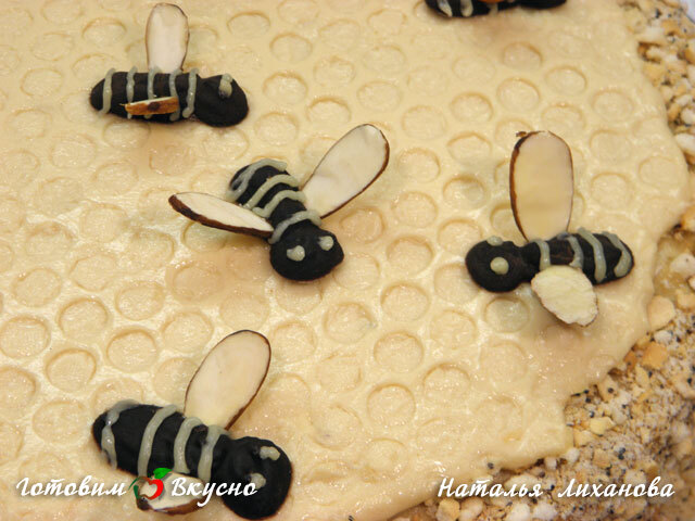 Этими симпатичными пчелками я украшала медовик «Пчелиный рай». В этом несложном рецепте нужно применить аккуратность, терпение и фантазию!