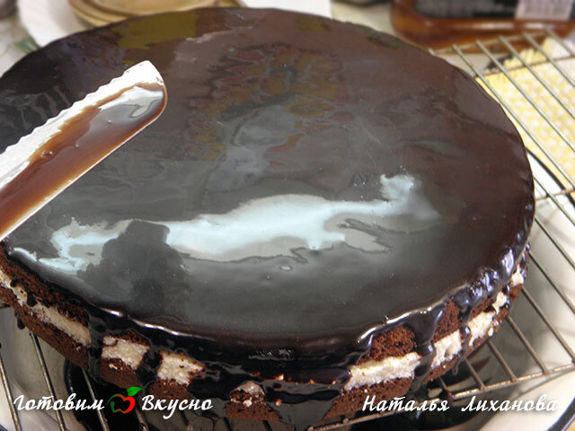 Шоколадный торт с лимонным кремом из манки поливаем глазурью и даем ему немного настояться. Приятного чаепития!