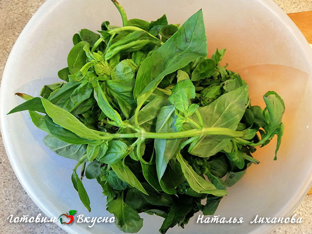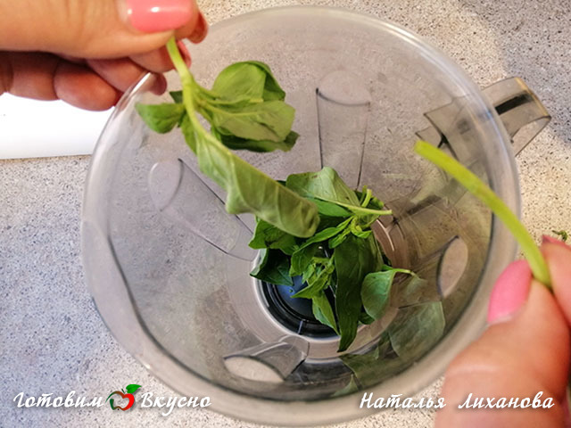 Важно, использовать зеленый базилик у него мягкий вкус и он идеально подходит для соуса песто.