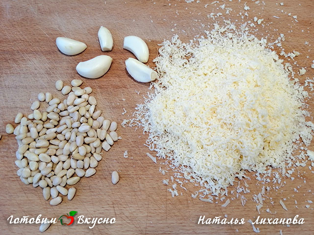 Подготавливаем орехи, чеснок и пармезан, его нужно натереть на самой мелкой терке.