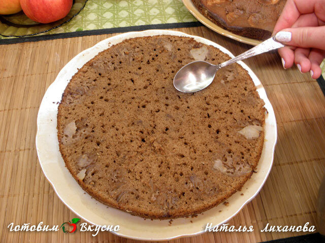 Торт с какао и яблоками убираем на три часа в холодильник.
