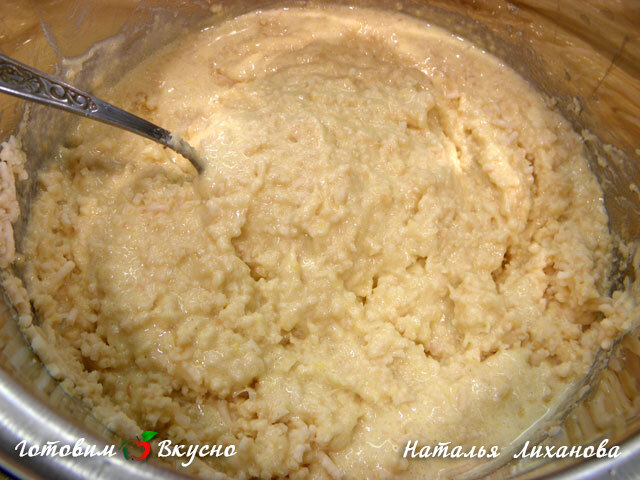 Массу аккуратно перемешиваем, выливаем в форму и выпекаем примерно 40-45 минут при температуре 200 градусов.