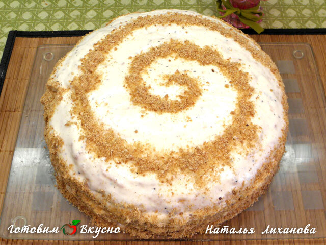 Каждую часть пропитываем ромом, смазываем кремом и складываем вместе. Верх украшаем кремом и молотыми орехами. Торт "Ореховый" из фасоли готов!