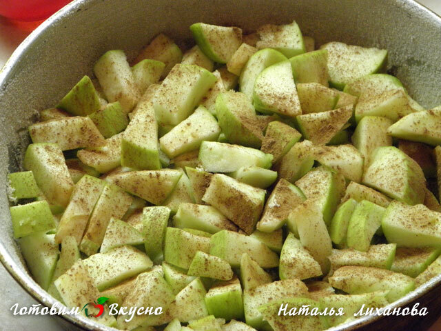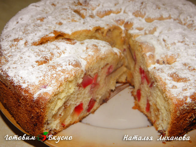 яблочный пирог щедро посыпаем сахарной пудрой.