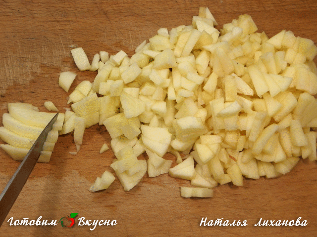 Яблоки нарезаем крупнее, я люблю, когда в запеканке попадаются кусочки яблока, если хотите более однородную запеканку, используйте блендер.
