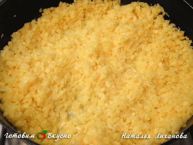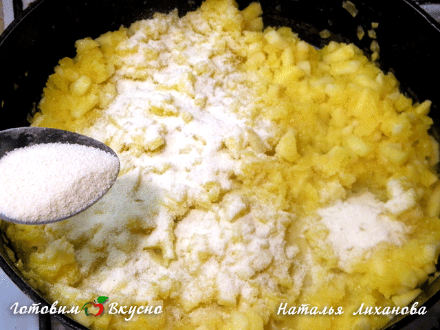 Добавляем манную крупу, перемешиваем и отставляем в сторону остывать.