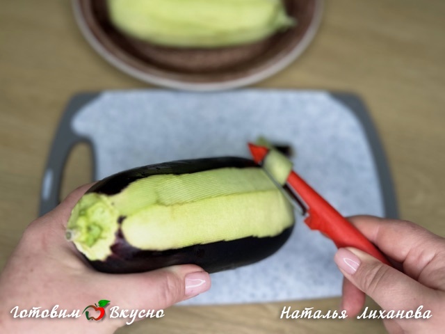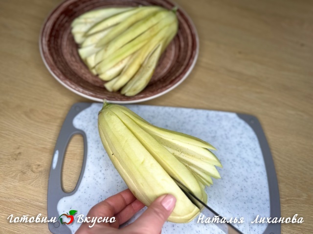 Хвостик, как я уже говорила, мы не трогаем, благодаря ему баклажан остается целостной конструкцией.