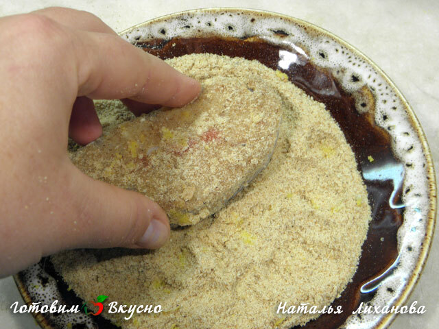 В одной емкости смешиваем орехи, сухари и натертую цедру лимона. В другой слегка взбиваем яйца. В третью насыпаем муку. Кусочки рыбы обваливаем в муке, потом в яйце и затем в ореховой панировке.