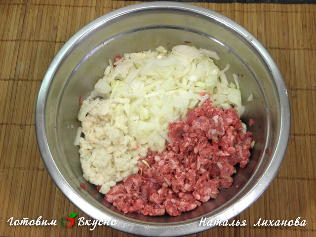 Отделяем влажной рукой часть фарша, делаем небольшие лепешки, в центр выкладываем начинку (количество начинки зависит от размера лепешки). Сворачиваем их мешочком.