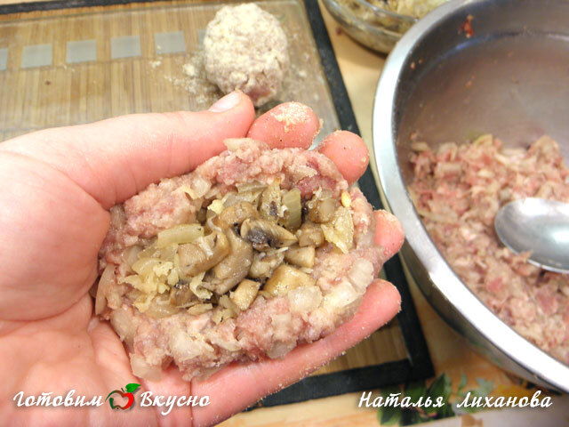 Сама котлета не должна быть хорошо соленой и острой, эту задачу выполняет начинка.